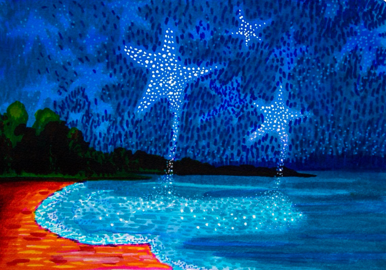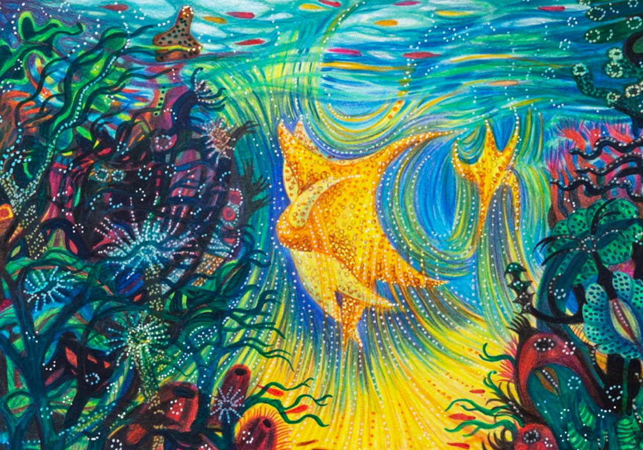 An inner journey that recently led her to her first graphic novel "René.e aux bois dormants" (éditions Sarbacane, 2021), woven of dreams, metamorphoses, magnetic characters, in an overflowing and living nature. Her taste for the uncommon, the unreal, the dreamlike, her free-spirited ways, naturally matched with the Vaadhoo perfume, its luminescent sea, conducive to extravagant visions.